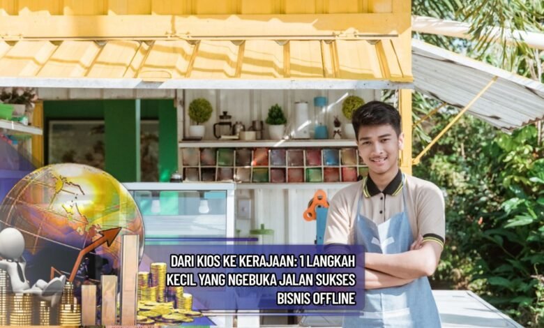 Visual: Grafik pertumbuhan bisnis offline, ilustrasi “kios jadi kerajaan”, kolase usaha kecil yang sukses.